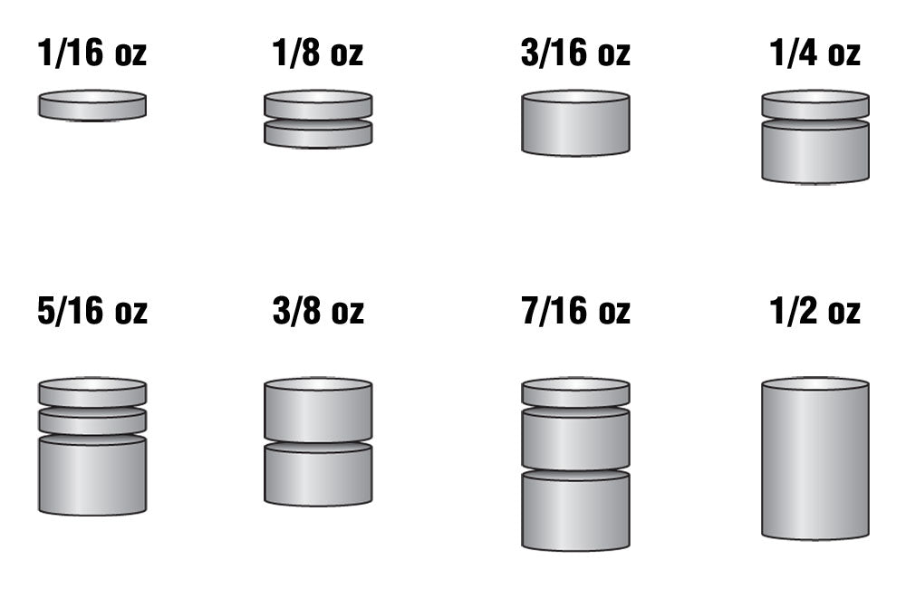 Tungsten is 1.7 times denser than lead and offers more control over precise weight distribution. Place more weight in a smaller, precise area. The incremental design allows car builders to bring racers to the maximum weight allowed in exact 1/16 oz (1.77 g) increments. Designed to fit a 3/8" (9.52 mm) cavity.