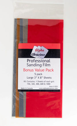 Professional Sanding Film Abrasive Sheets have razor sharp grit embedded in a double coating, producing a long lasting resilient product. This product can be used wet or dry and will not peel or crack, even under heavy use and strain! A gradual progression from coarse to fine grits will produce best results when sanding and finishing. This product is a must have and can be used on any hobby medium including wood, plastics, clay/ceramic or metal.