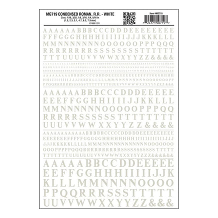 Woodland Condensed Roman R.R. Decal White 719 - MPM Hobbies