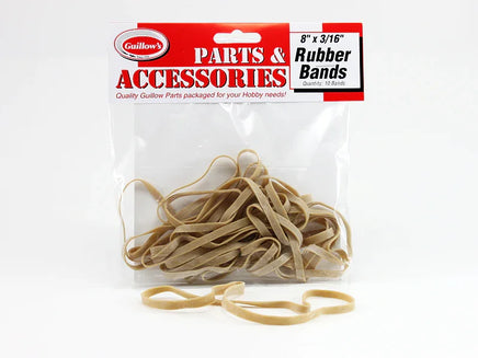 This package contains 10 rubber bands. These bands can be used as replacements on GUILLOW’S motorplanes #60, 76 and series 900 balsa kits.