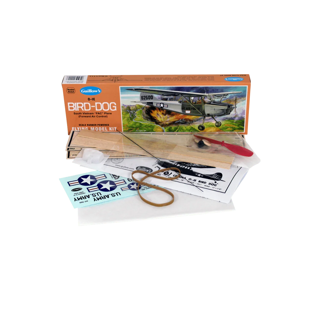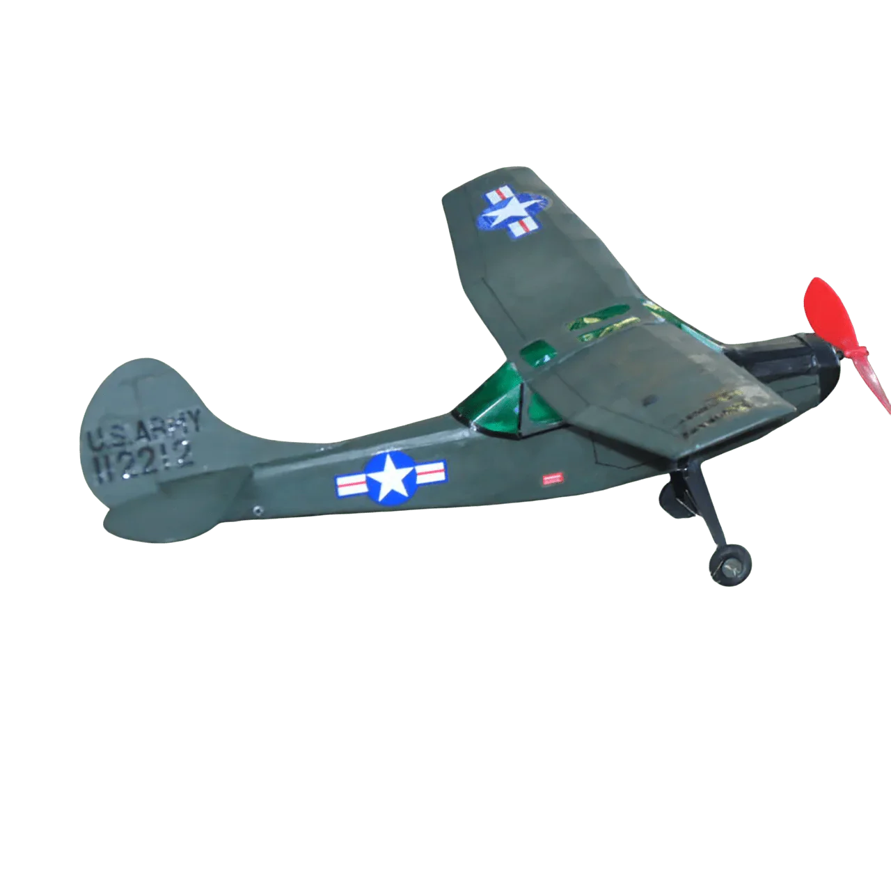 Originally designated the L-19, The Bird Dog went into production in June, 1956 and was used during the Korean campaign as a liaison airplane by Army Field Forces to spot the enemy’s troop concentrations, direct ground operations, carry ammunition, and evacuate wounded. It returned to production in 1962 and designated the 0-1E, the Bird Dog gained fame anew as a “FAC” airplane (forward air controller) in South Vietnam war where it was very effective in spotting and directing fire against the enemy Vietcong forces.