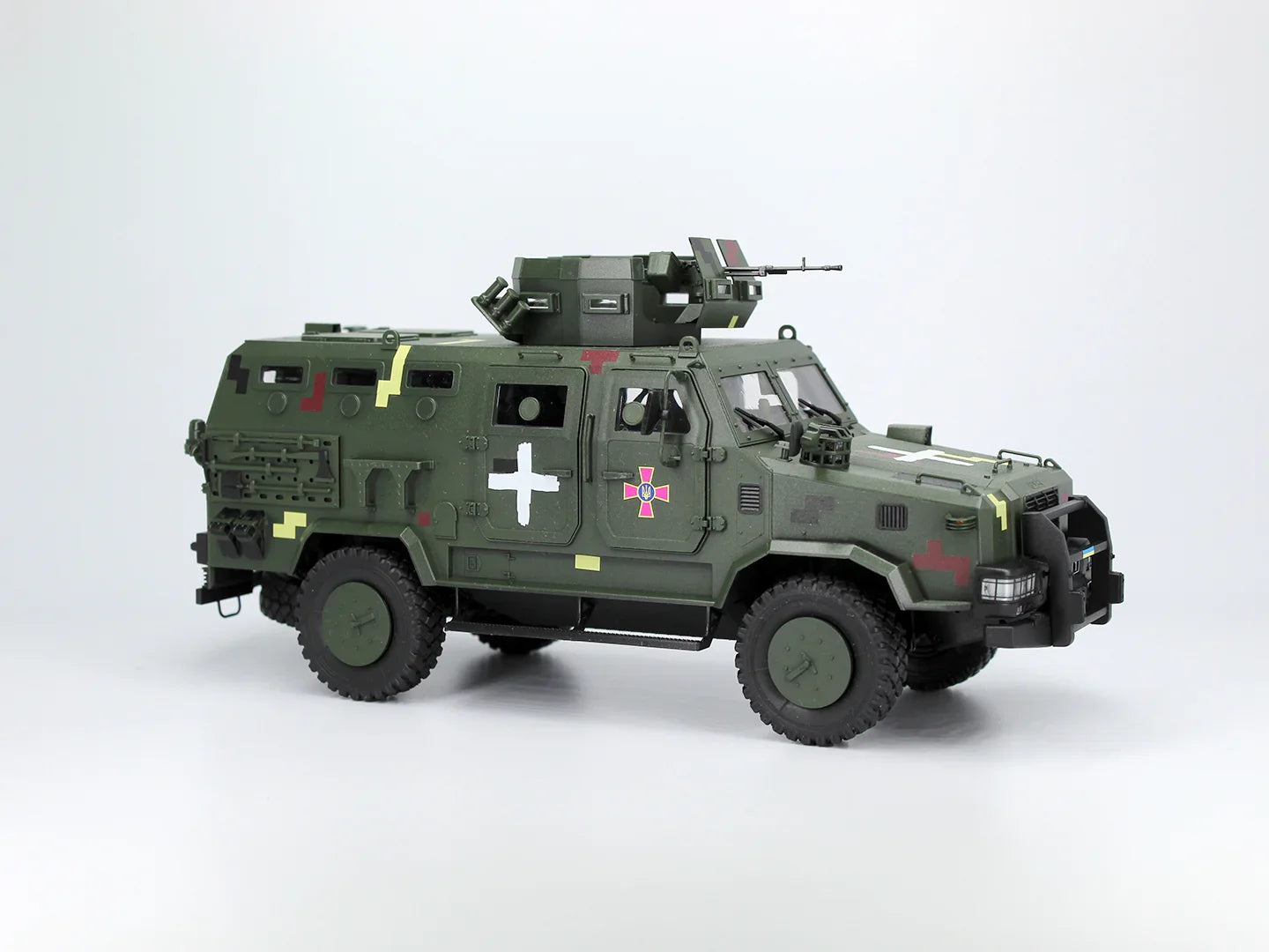 ‘Kozak-2’ belongs to the MRAP class of combat vehicles – special vehicles designed to protect the crew from mine explosions and ambushes. The tasks that the Kozak-2 can perform include patrolling, escorting vehicles, communications and fire support for personnel in combat. The vehicle was developed by the Ukrainian company PJSC RPA ‘Practika’. The ballistic protection of the armored vehicle is provided by special alloy steel with ultra-high hardness, it also has bulletproof glass. The armor protects the crew from small arms fire of 7.62 mm caliber, ammunition fragments and mines. The crew and troops are equipped with anti-trauma seats with five-point safety belts. The vehicle can be armed with a heavy machine gun or a 7.62 mm machine gun, both of which are mounted in an armored turret with a circular rotation. In the Ukrainian army, the armored vehicle is in service with airborne assault troops, marines and reconnaissance units, and has also been supplied to the National Guard and the State Border Guard Service of Ukraine. Since the beginning of full-scale war, Kozak-2 has been widely used by various units of the Armed Forces of Ukraine.