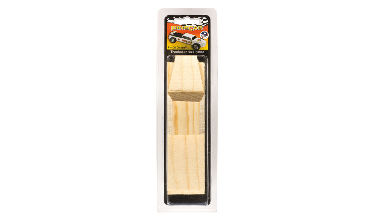 Rough-cut, unfinished 4 x 4 Truckster shape for those who want a great looking racer but may not have the necessary woodworking tools or skills. Simply sand, paint and decorate.