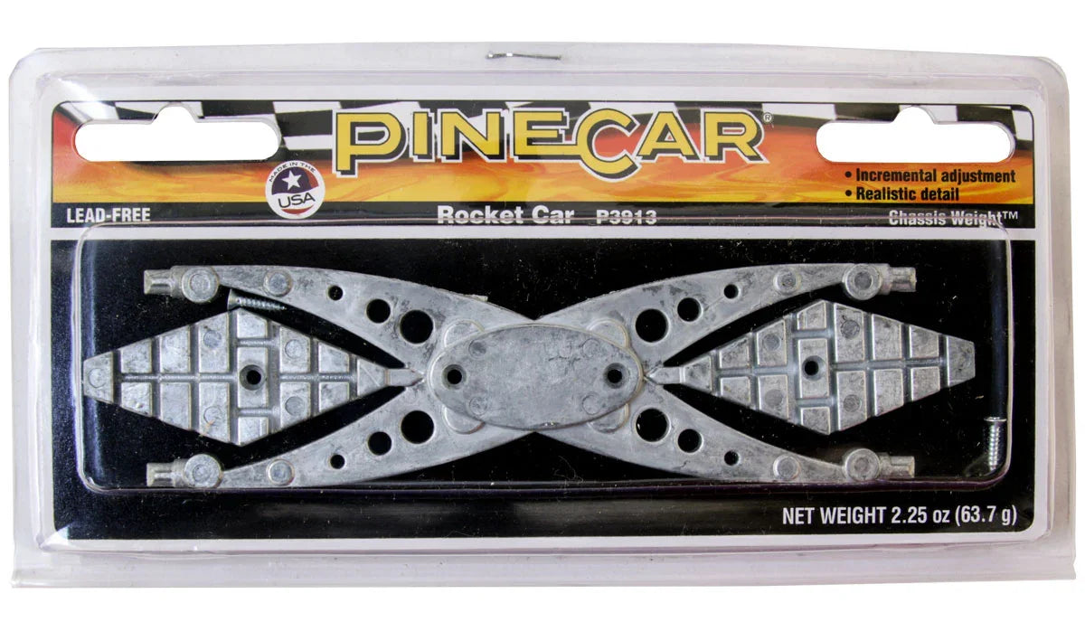 These lead-free Chassis Weights replicate the underbody of real cars. Weights are easy to install and incremental to allow precise weighting of racer. Go fast and go in style.