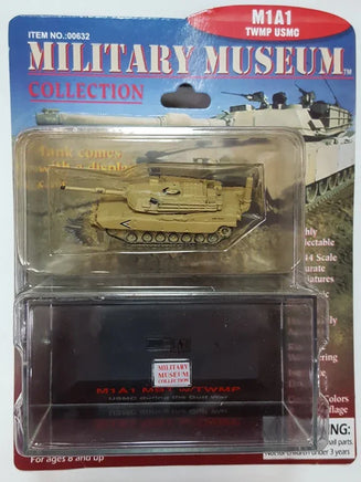 M1A1 with TWMP mineplow in USMC markings. Assembled and painted plastic display model. Comes with clear plastic display case. Perfect for collecting, wargaming, or N Guage railroading!