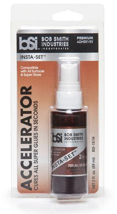 INSTA-SET™ is a catalyst which acts as an accelerator that allows CAs to quickly cure in thick layers by enhancing the alkaline conditions during polymerization. INSTA-SET™ in a spray bottle is normally used to cure the CA that flows from joints when parts are pressed together. Applying an additional bead of thick CA along a seam and then curing it with INSTA-SET™ significantly enhances a joint’s strength. For difficult to bond materials, INSTA-SET™ can be applied to one surface and CA to the opposite surface. When brought together, they will bond instantly. INSTA-SET™ is formulated with a strawberry scent and activates CA in 6 to 8 seconds without any degrading of the CAs strength, which can occur with many other accelerators. It is compatible with all surfaces, even clear plastic and white foam.