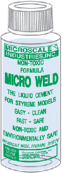 Description: This product cannot be shipped internationally. There is nothing quite like Micro Weld styrene solvent cement. You will find that application is very much different from and easier than, other types of cement. It is much more forgiving than other types of cement are, stronger when dry, and will not craze clear plastic or tend to warp thin plastic parts as other types of cement can. Since it will not “lift” most paints, it can be used to repair models without repainting. No longer do parts need to be held together while applying adhesive to the seams. You will now have both hands free to position parts properly. Clean brushes with water.