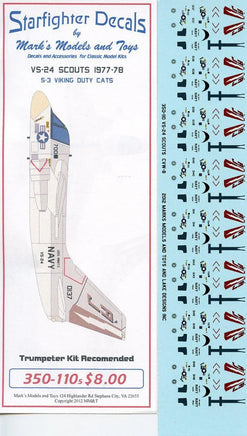 Set includes markings for 8 aircraft from VS-24 Scouts/Duty Cats from the 1977-78 cruise with CVW-8 aboard the USS Nimitz CVN-68.