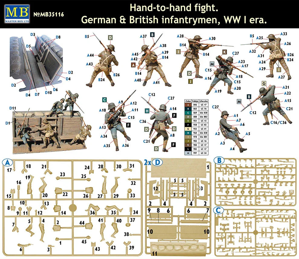 1/35 Master Box Hand-to-Hand Fight German & British Infantrymen WWI Era 35116