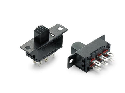 This is a two-position switch, on/off. Works well in low-power applications. Use in a variety of Tamiya construction or robotics projects.