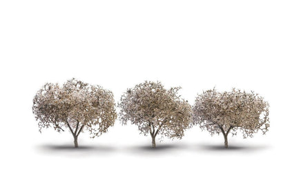 Cherry blossoms are deciduous trees that thrive in sunlight and temperate climates. These trees are commonly found all over the Northern Hemisphere. Cherry blossoms are easily recognized by their pink or white flowers that bloom in the spring. Use a combination of types and sizes of trees throughout your layout for superior realism. Trees have a planting pin and an optional detachable base for temporary placement.