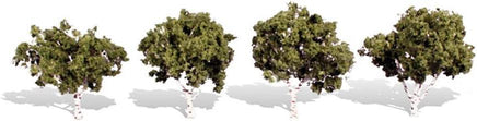 Finely detailed, painted, flexible trunks and foliage in a variety of natural contrasts and highlights. Use combinations of types and sizes throughout your layout for superior realism. Trees have planting pin and optional detachable base for temporary placement.