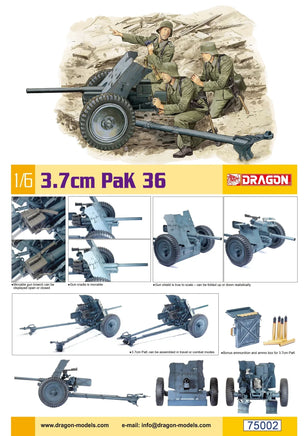 In the second release in Dragon’s new 1/6 series of model kits, the PaK 36 comes in from some loving attention from the company’s expert designers and engineers! Hot on the heels of the first 1/6 Kettenkrad kit comes this plastic rendition of this common German anti tank gun. The large scale allows all the intricate detail of the original weapon to be fully rendered. Every component is accurately produced to scale and construction is straightforward, making this kit a pleasure to assemble. To provide more options, ammunition and ammo cases are also provided. Modelers now have the makings of a fine diorama, with the Kettenkrad all ready to tow this 3.7cm PaK 36 into action!