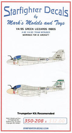 Markings for 10 A-6E and 1 KA-6D Tanker. Will fit any 1/350 A-6A/E aircraft kit. VA-95 served with CVW-11 aboard the USS Enterprise in the 1980's.