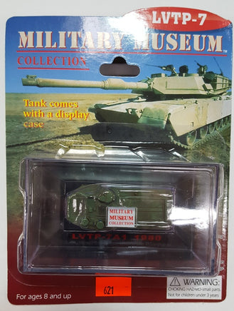 LVTP-7A-1 amphibious assault vehicle in 1/144th scale. Markings for USMC in South Korea 1980. Assembled and painted plastic display model. Comes with clear plastic display case. Perfect for collecting, wargaming, or N Guage railroading!