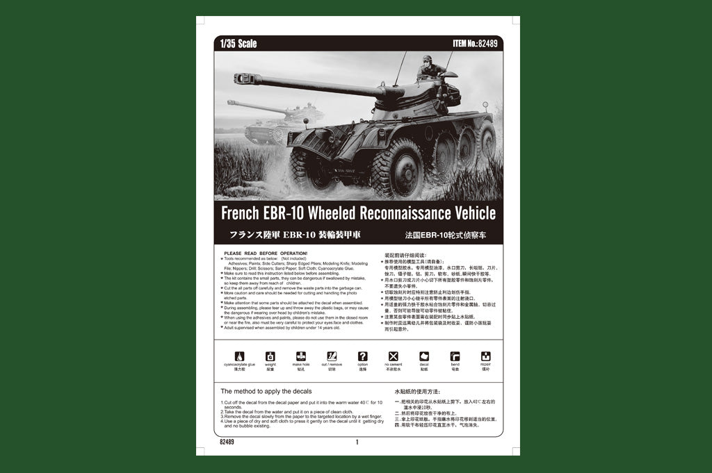 The Panhard EBR was a French armored car produced from 1950to 1960. It is estimated that total production of the was1200 units. The armored car was designed at the Atelier de Construction d'Issy-les-Moulineaux in 1946 to meet a requirement for an air-portable vehicle to support paratroopers, the first prototype ran from 1948. The uncommon two-part 'oscillating' turret is set to the rear of the vehicle and holds the commander and gunner. The original 75 mm gun, modelled on the German L/71 Panther gun, and tires were bullet-proof.