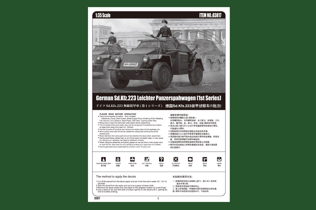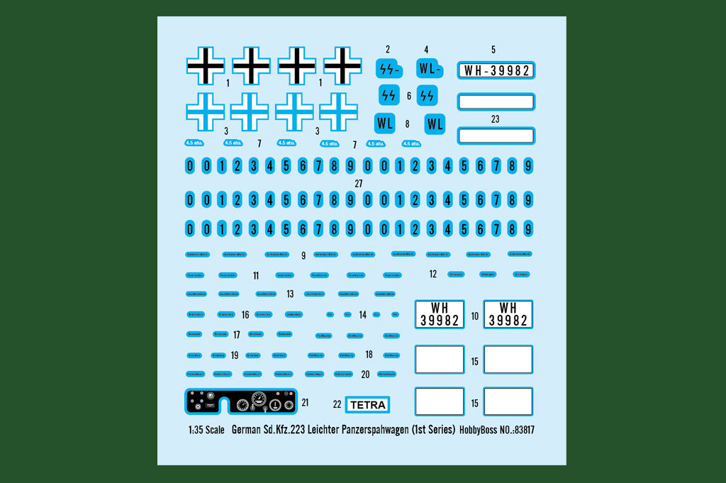 A radio car version, armed like the 221 with a 7.92 mm MG34 machine gun. Included additional radio equipment and had a large "bedframe" antenna over the vehicle. Over 500 of the SdKfz 223 were produced.