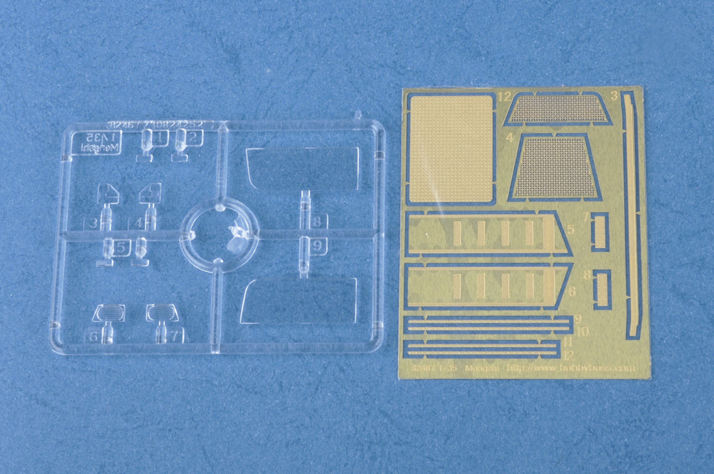 - Total Sprues: 8 sprues, chassis, engine cover and tires