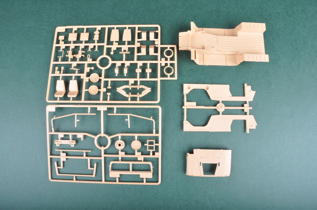 - Total Sprues: 8 sprues, chassis, engine cover and tires