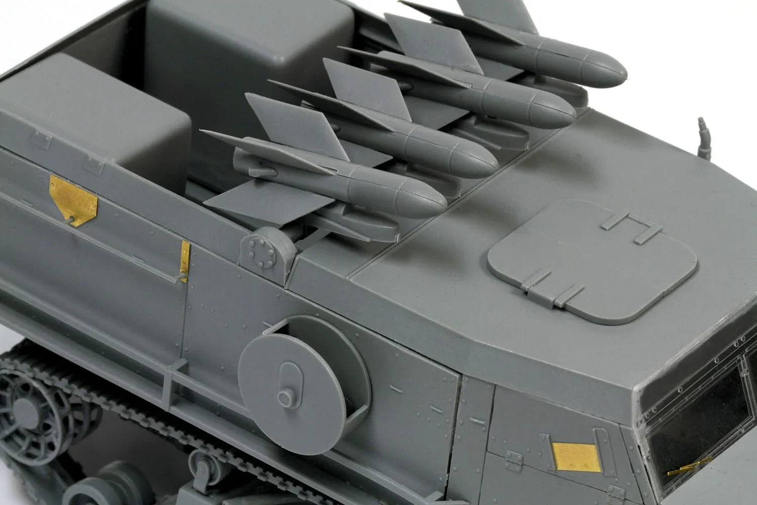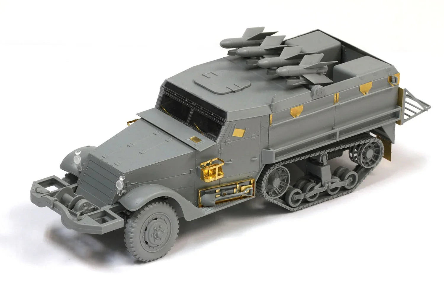 Dragon, in its Six-Day War series, has already produced a 1/35 scale kit of an Israel Defense Forces (IDF) version of an M3 halftrack, and now another interesting variant is available for modelers. The new kit features an M3 boasting Nord Aviation SS.11 wire-guided antitank guided missiles (ATGM), which was done to beef up the offensive capability of IDF halftracks. The SS.11 missile was steered to a line-of-sight target by the operator via thrust vectoring control. The 30kg missile had a maximum range of 3,000m. Associated modifications to the halftrack included fitting an armored roof, a full-width launch rail in the mid-section, and storage boxes in the rear for spare missiles. Dragon’s recently released M3 halftrack has been suitably modified to create this 1/35 scale Israeli M3 antitank missile carrier. The most obvious difference is the bank of four SS.11 ATGMs mounted atop the vehicle. The fighting compartment has been modified to incorporate a firewall between the cab and rear compartment, and two large storage boxes are installed in the rear. A roof hatch can be depicted open or closed. There is also a plentiful supply of photo-etched parts in the kit to portray metal components and tool brackets. As part of Dragon’s growing Six-Day War collection, this is a tremendous-looking vehicle that takes the M3 halftrack to new and lethal places!
