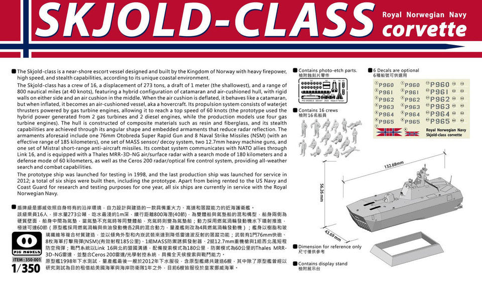 1/350 Pig Models Skjold-Class Royal Norwegian Navy Corvette 350-001