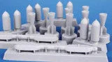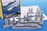 The SMB-2 jets were delivered to Israel as an air superiority fighter. In this role they were soon superseded by their successor, the new Mirage IIIC delta jets and so the Super Mysteres were given a new role as fighter bombers which suited them very well due to the ability to carry heavy payloads. The SMB-2s often carried quadruple style bomb racks under the wings, each with four bombs. There was usually one rack under each wing, or even a pair of them under each wing. Our set contains two racks and eight resin cast bombs.