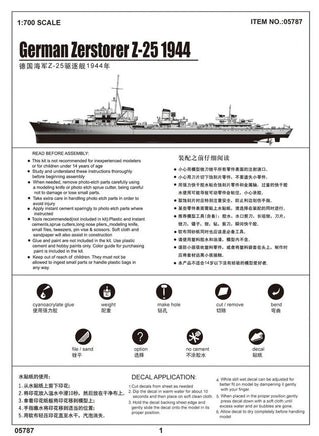 1/700 Trumpeter German Zerstorer Z-25 Destroyer 1944