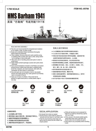 1/700 Trumpeter HMS Barham battleship 1941 Plastic Model Kit