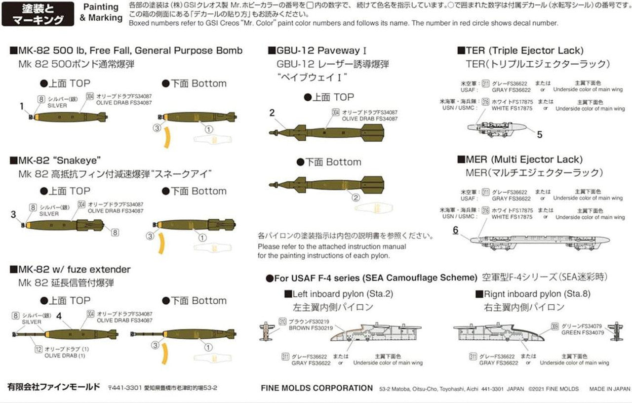 1/72 Fine Molds Us Aircraft Bomb Set (1960S) Plastic Model Kit Fp45