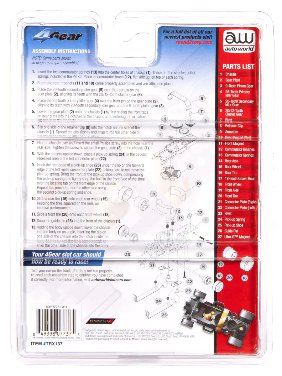 - Build a complete HO scale 4Gear Slot Car with Auto World’s deluxe pit kit.