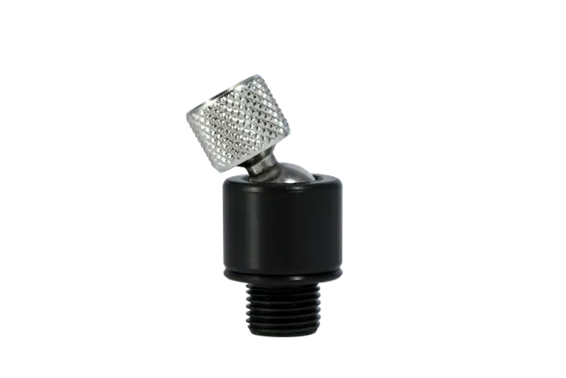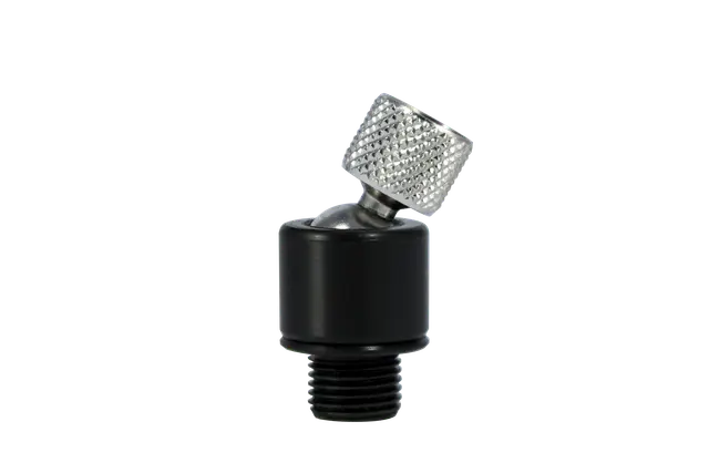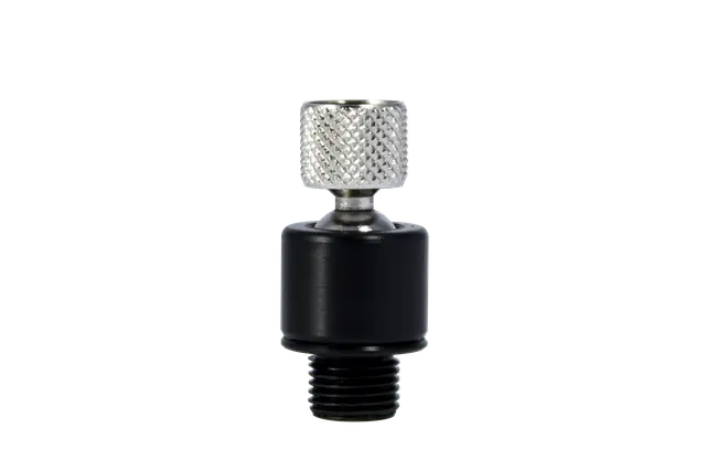 Black and silver valve stem cap on a white background