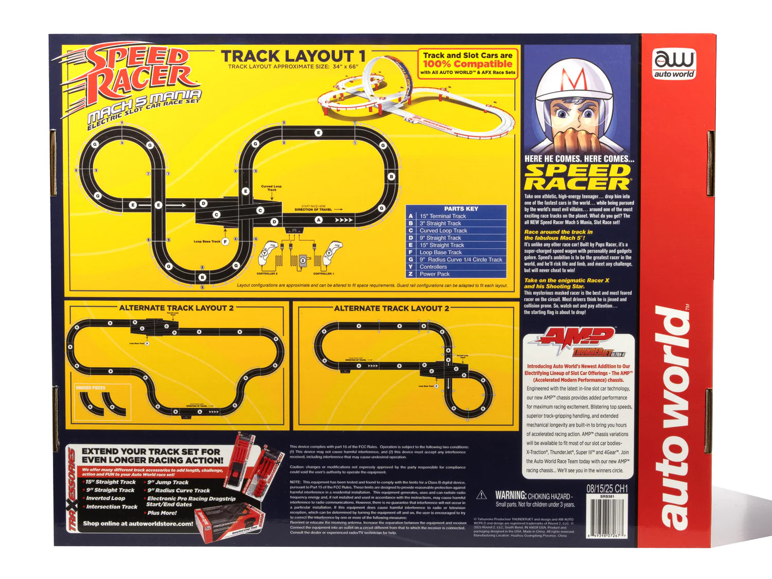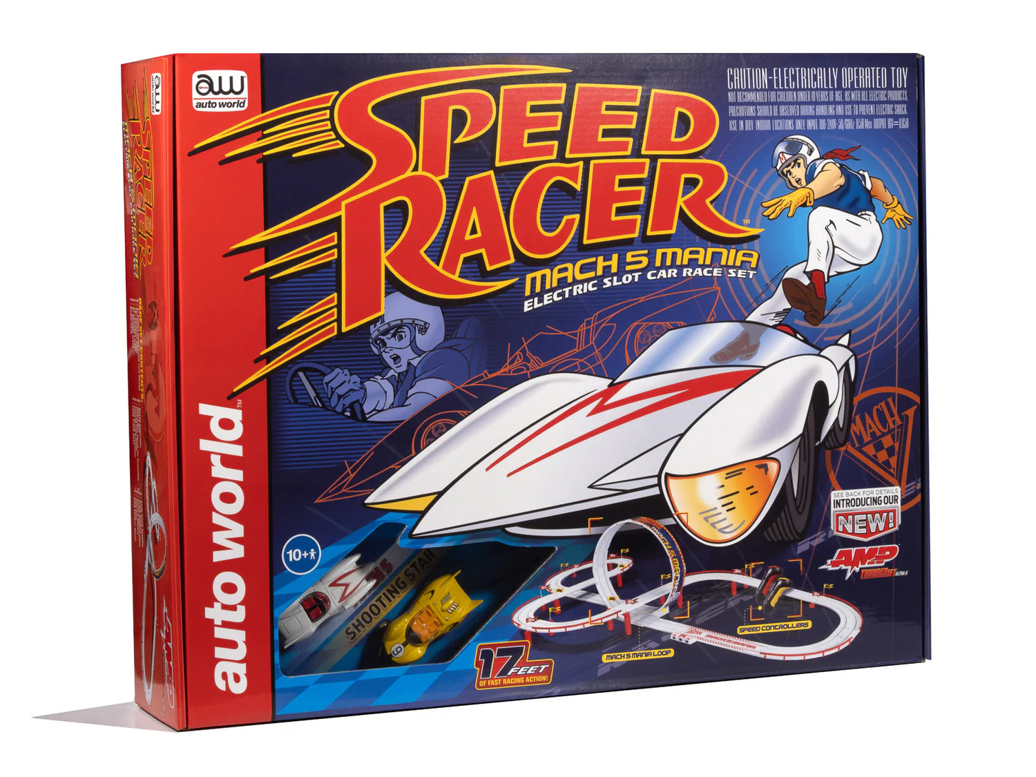 Take one athletic, high-energy teenager... drop him into one of the fastest cars in the world... while being pursued by the world's most evil villains... around one of the most exciting race tracks on the planet. What do you get? The all-NEW Speed Racer Mach 5 Mania, Slot Race set!