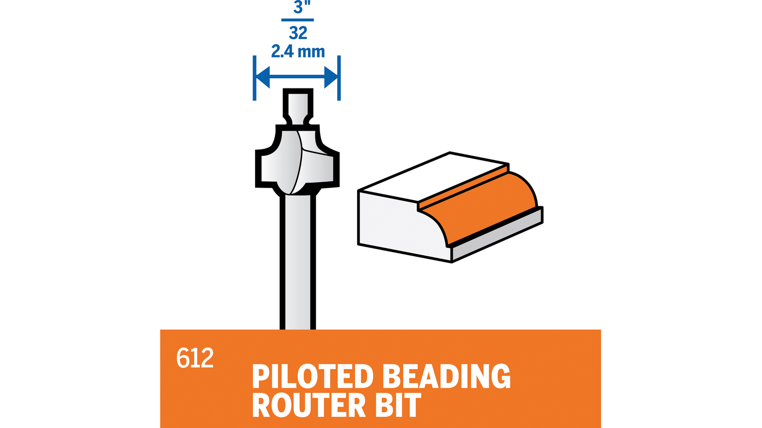 - Piloted beading bit for creating attractive, decorative edging
