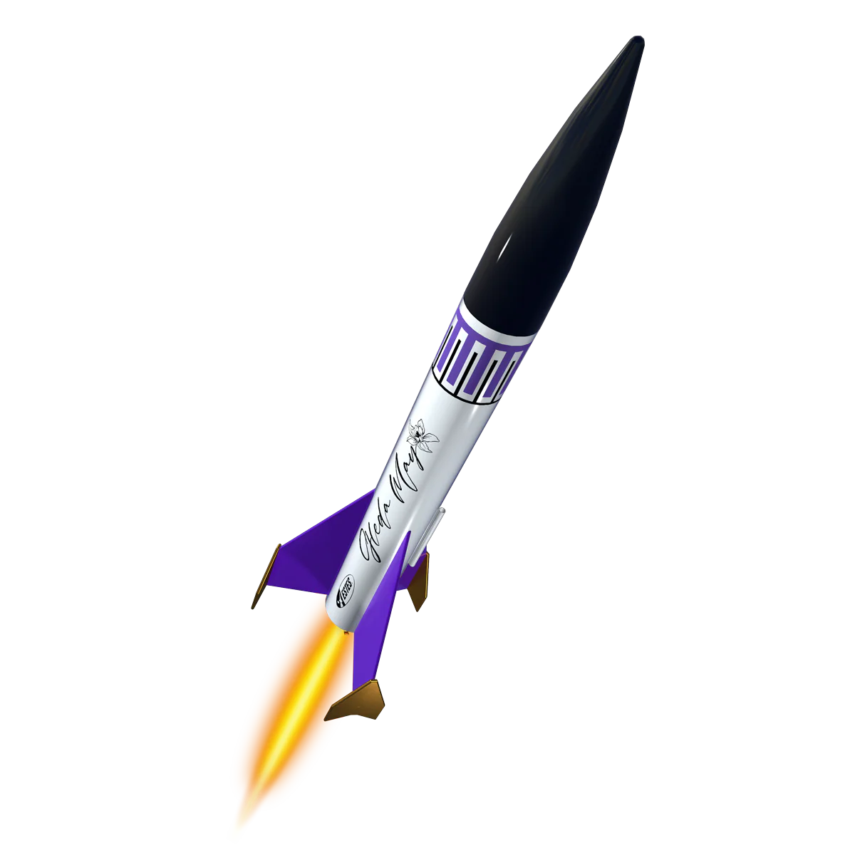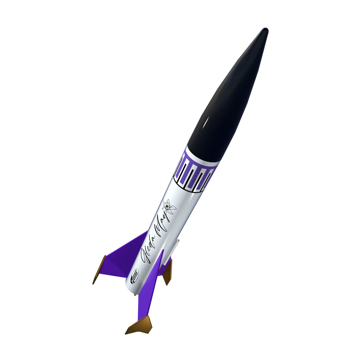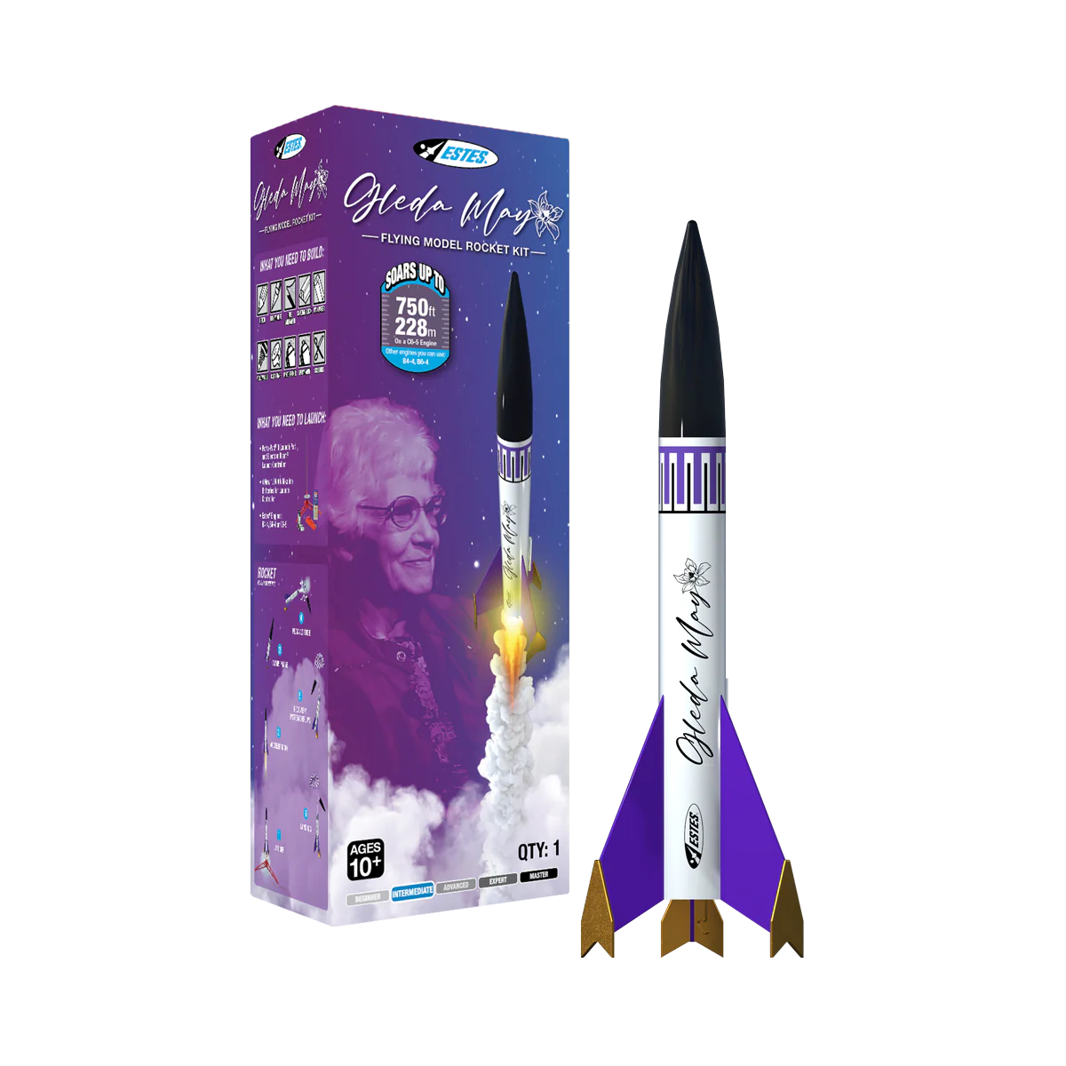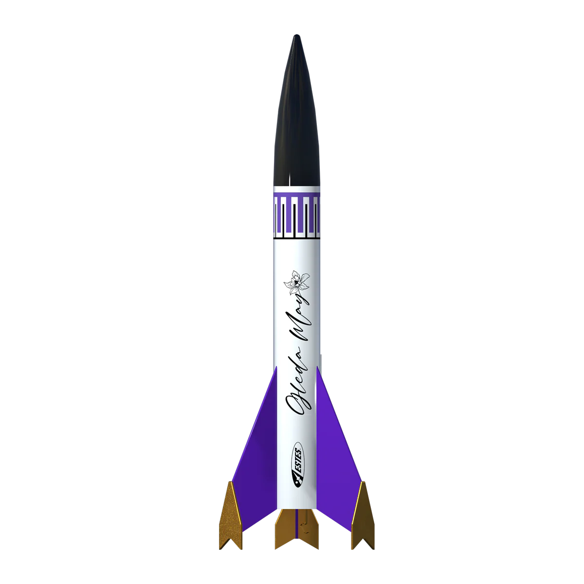 Introducing the Gleda May model rocket, a tribute to Gleda May Estes, co-founder of Estes Industries. This rocket honors her pivotal role in the company's early years, including her dedication to hand-stitching the seams of every catalog that left the building.