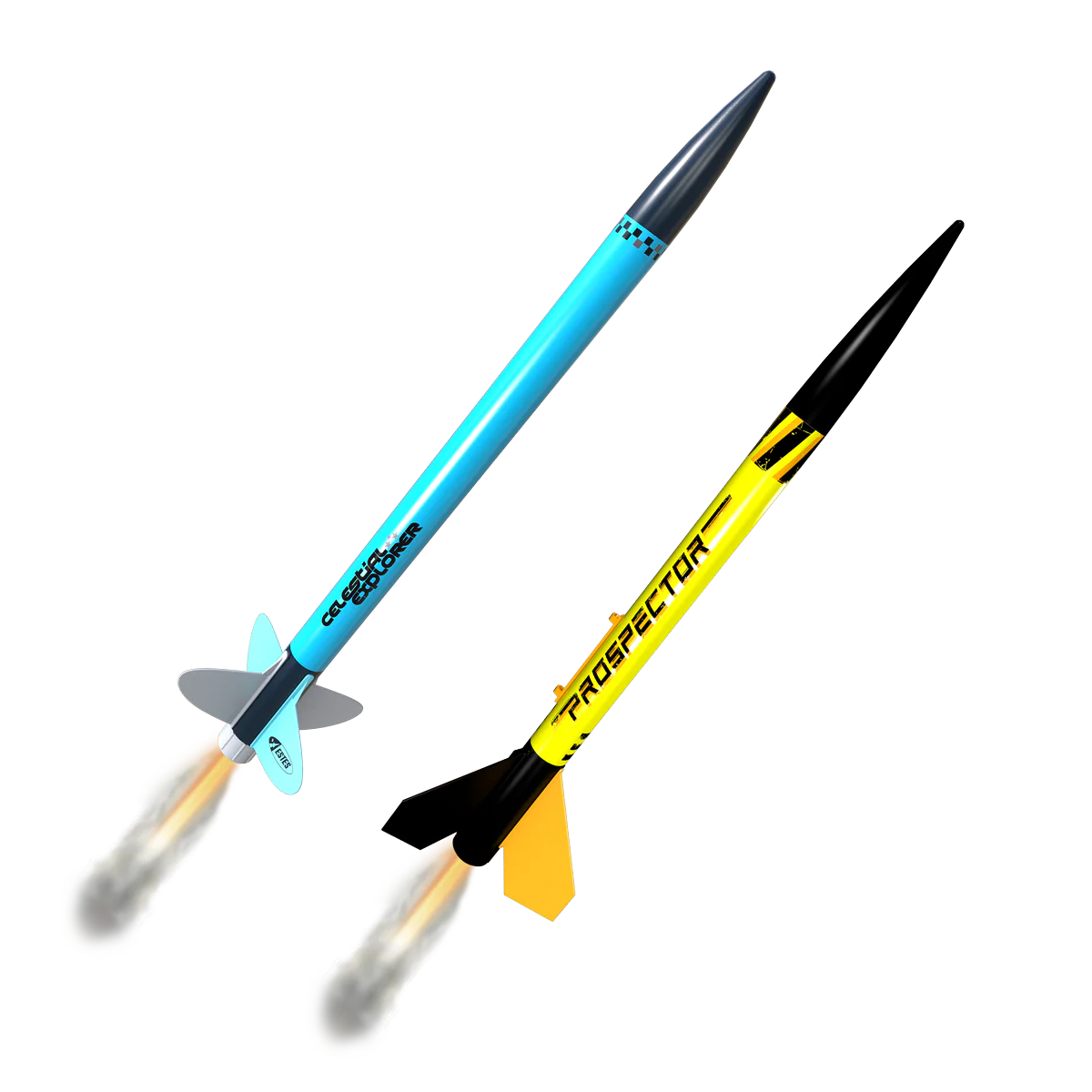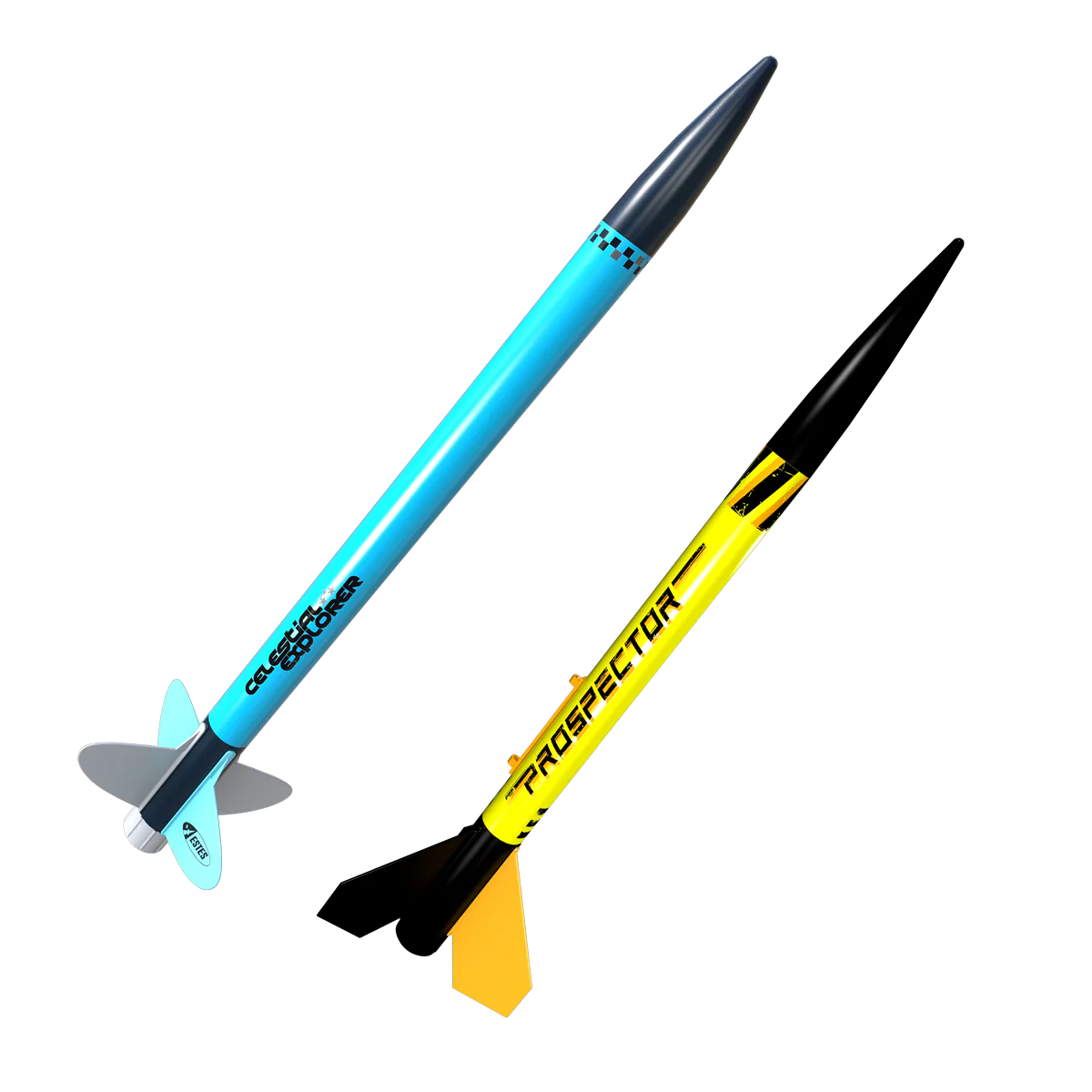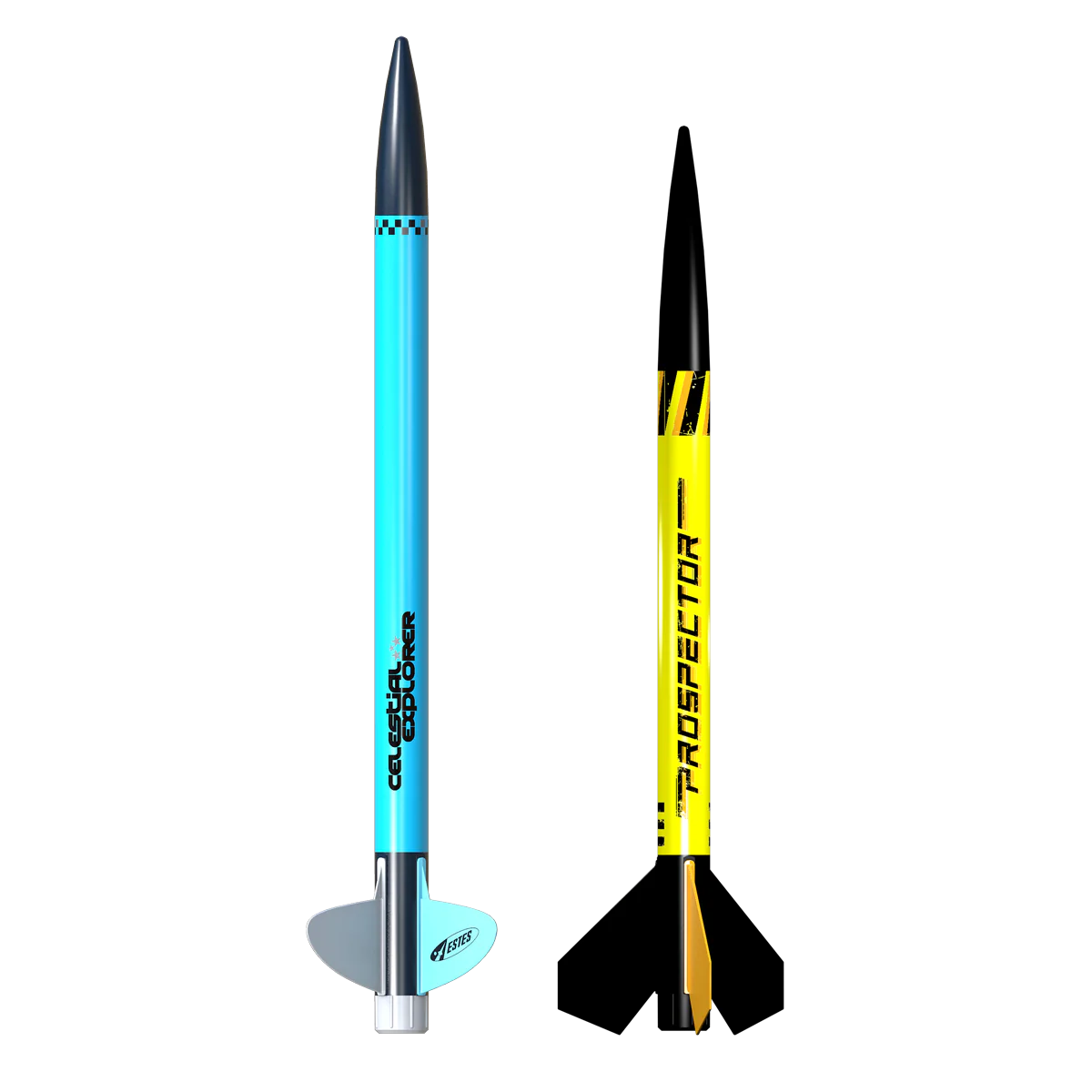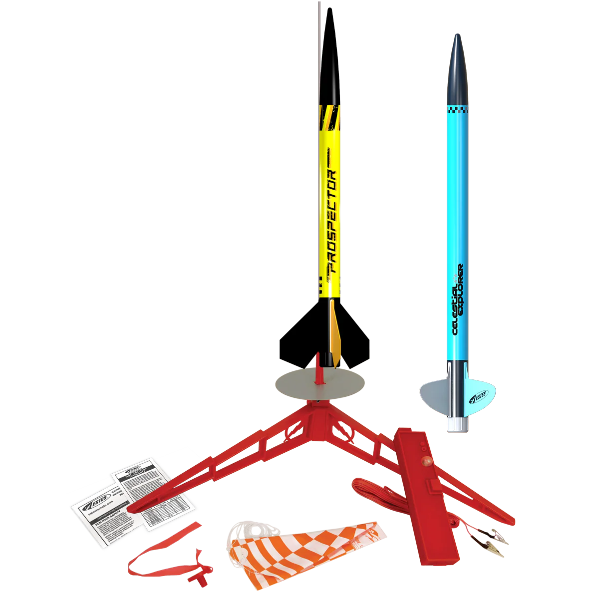 Experience the thrill of liftoff with the Pathfinder™ Launch Set! This exciting hands-on kit includes two beginner-level rockets, the Celestial Explorer and the Prospector, each equipped with a parachute recovery system and capable of soaring up to 1000 feet. With the included launch pad and controller, all you need are Estes engines (sold separately) to start your rocketry adventure.