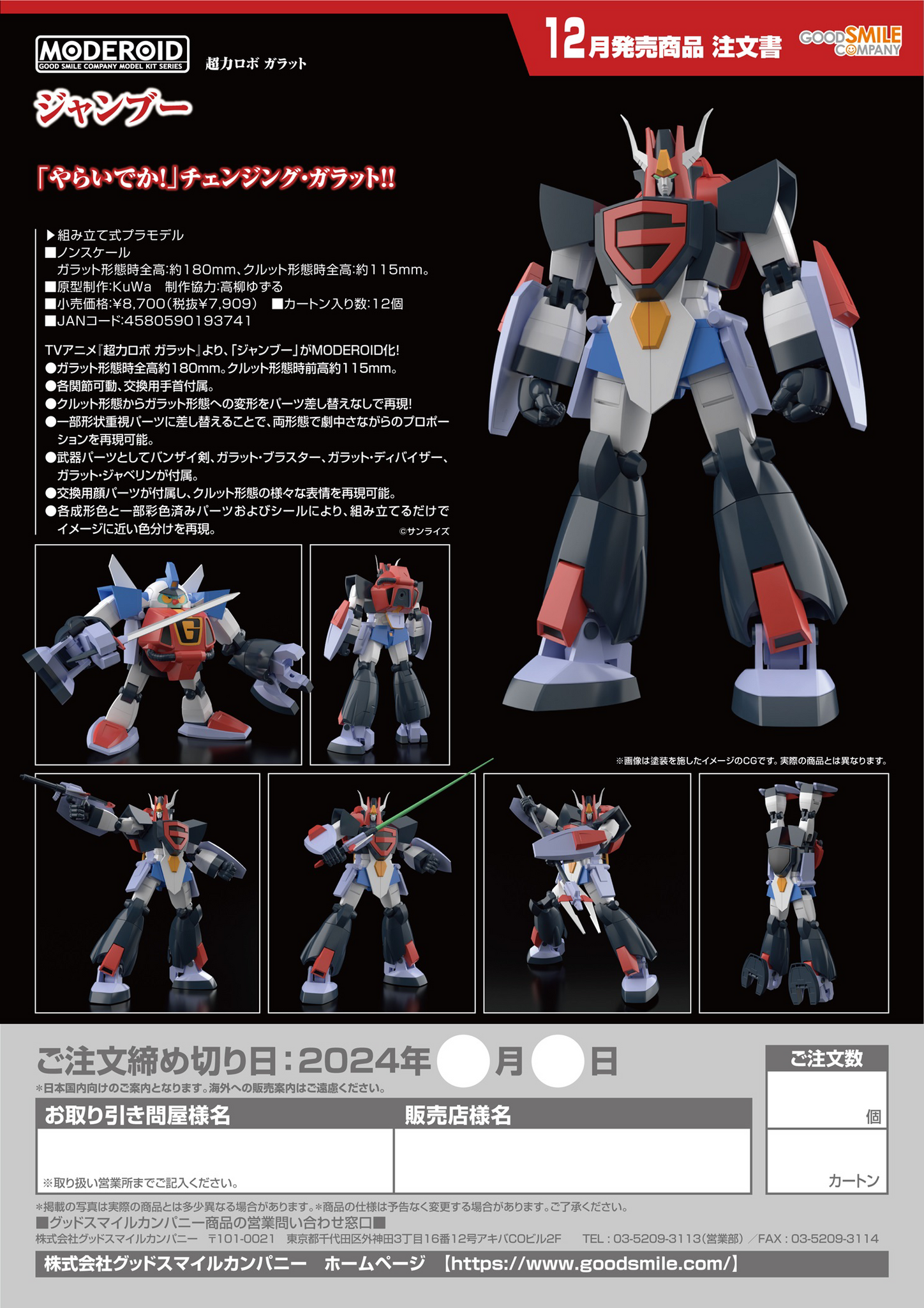 From the anime "Choriki Robo Galatt" comes a MODEROID of Jumbow!