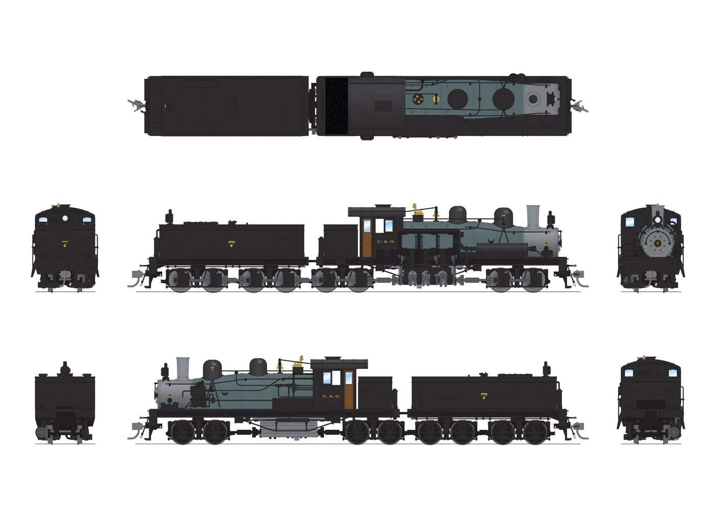 HO Broadway Ltd Class D 4-Truck Shay C&O #7 As-Delivered Paint Paragon4 Sound/DC/DCC Smoke 7810