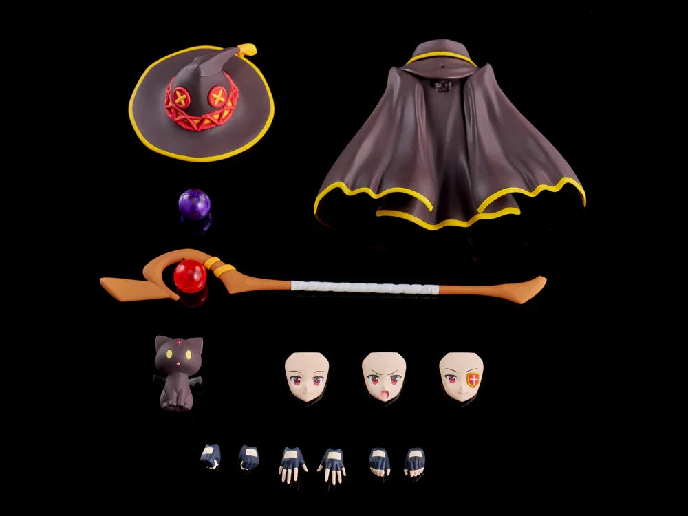 • ・Optional parts such as a hat, cloak, three types of hand parts, Megumin's staff, Chomusuke, and a display pedestal are included.