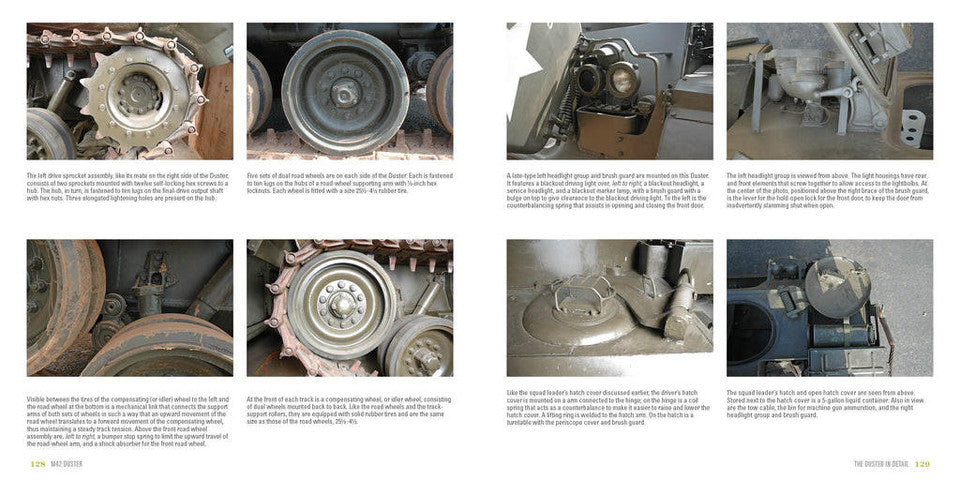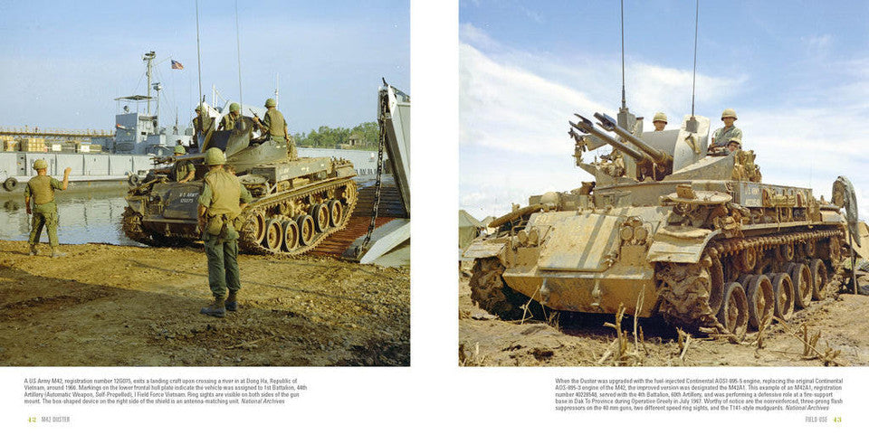 The M42 Duster was a tracked antiaircraft vehicle developed by Cadillac for the US Army in the early 1950s. The vehicle adapted the Bofors 40 mm AA gun to a modified M41/T41 tank chassis. Although never particularly prolific in the intended air defense role, the Duster did find a niche during the Vietnam War. The M42 was relatively small and agile, and the high rate of fire and loud report from its guns were quite intimidating. These traits, along with simple availability, resulted in the type being pressed into ground combat against infantry and light vehicles, for which it received moderate acclaim. This volume includes over 300 photos of this quirky vehicle. Every nook and cranny of the interior and exterior is shown, along with many fascinating combat photos.