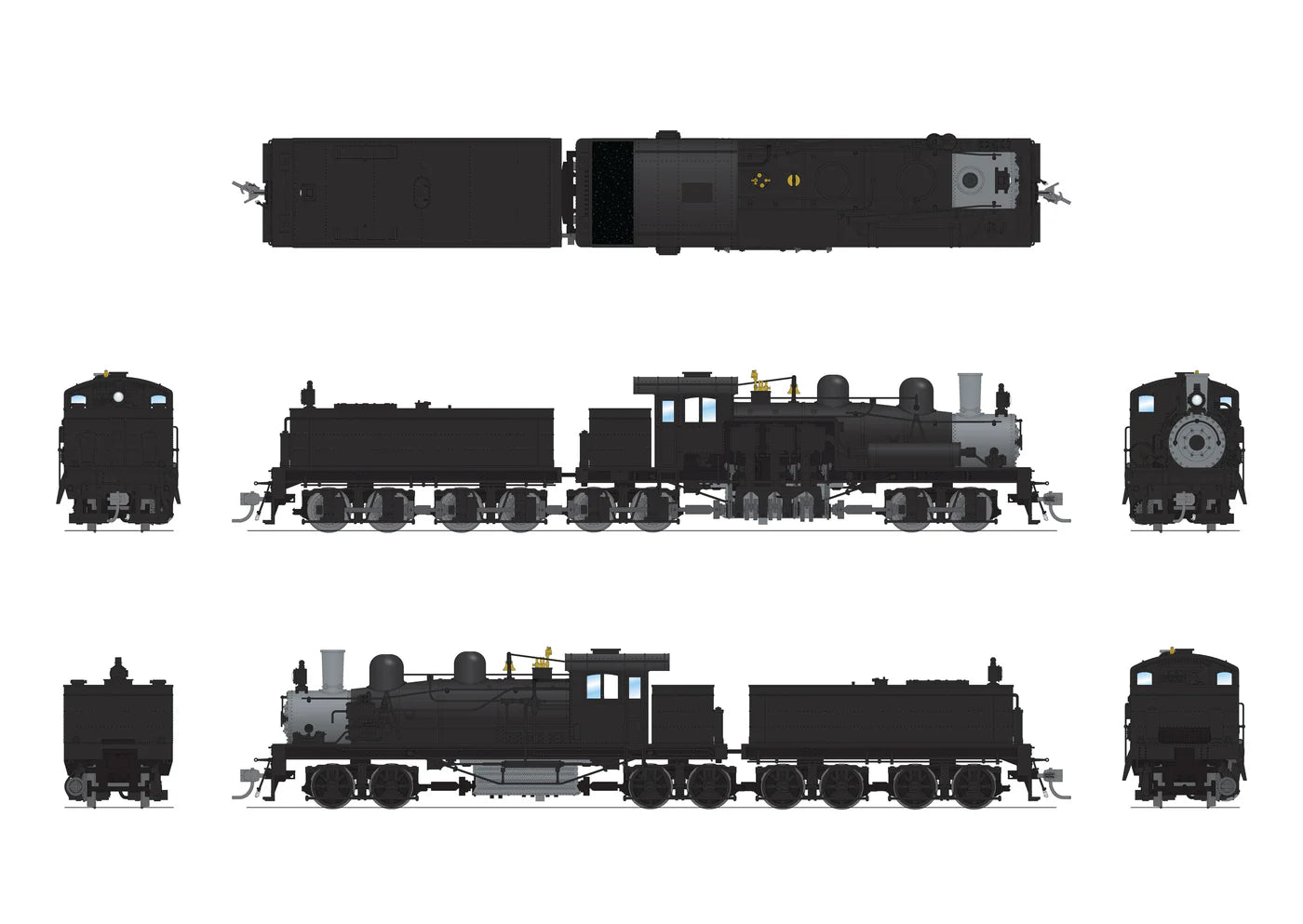 In our first production run, we are offering several variations of the 150-ton Class D Shay locomotives. We offer locomotives in multiple road names and paint schemes. Each of our models will be available with our newest Paragon4 Sound/DC/DCC sound system with smoke and integral GoPack capacitors. Our models have died cast locomotive and tender bodies for maximum weight and tractive effort. See below for additional model features including the full list of individually controllable lights.