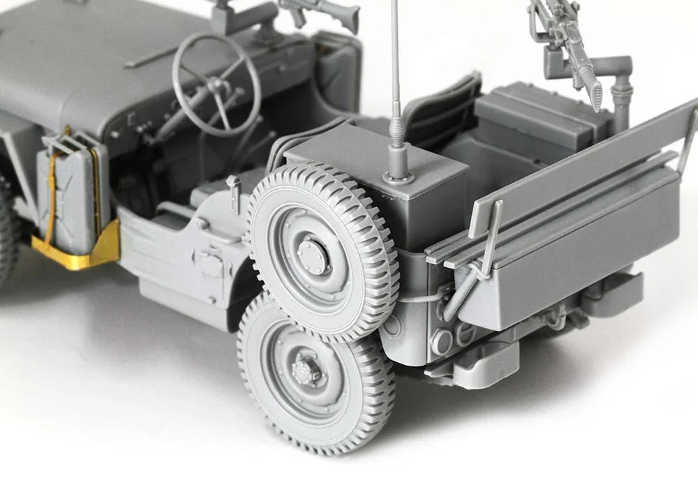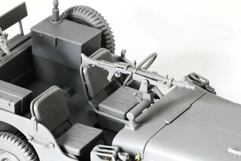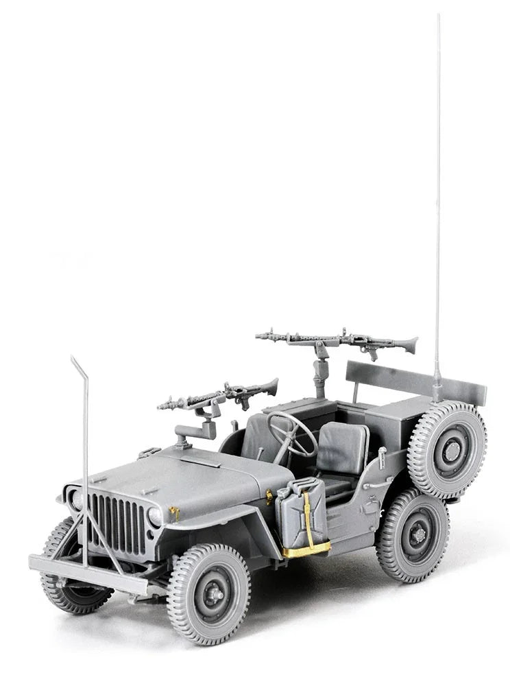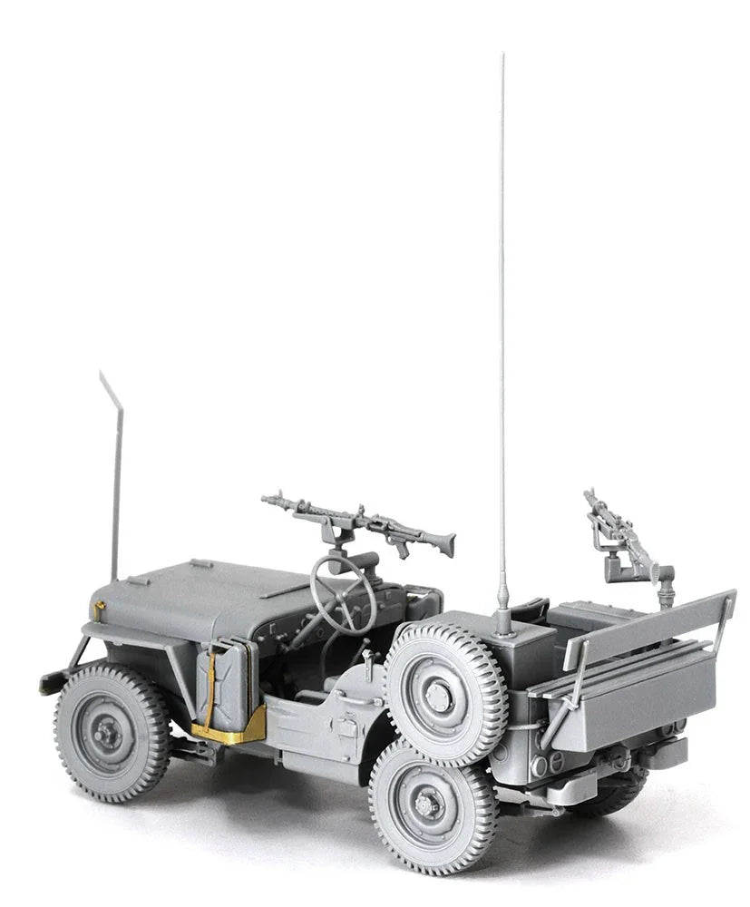This 1/35 scale IDF 1/4-Ton 4x4 Truck inherits the excellent foundational features of Dragon’s Truck before. However, it has been suitably modified to represent a jeep used by Israel. The model features a solid one-piece body tub that ensures accurate alignment. There are many new parts to help create the IDF variant, including a stowage box on one side of the rear compartment and a radio and antenna on the other. Perhaps the most notable feature of this vehicle is the mounting of two ex-German MG34 machine guns, one in front of the co-driver and another in the rear. The rear gunner is also provided with a bench seat. This is an exciting modification of the famous 4x4 American vehicle, now available with an Israeli twist for the first time in Dragon’s range. Features: - MG mounts are new - Detailed MG34 machine gun - New-tooled Box - New bench seat for MG gunner - New-tooled Radio & antenna - Wire - Cutter on front part - Spare wheel in new position - Photo-Etched parts included