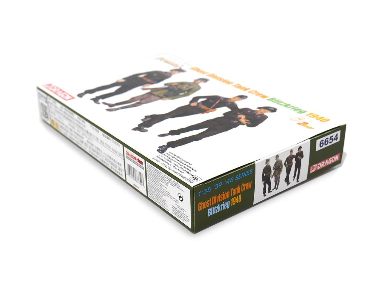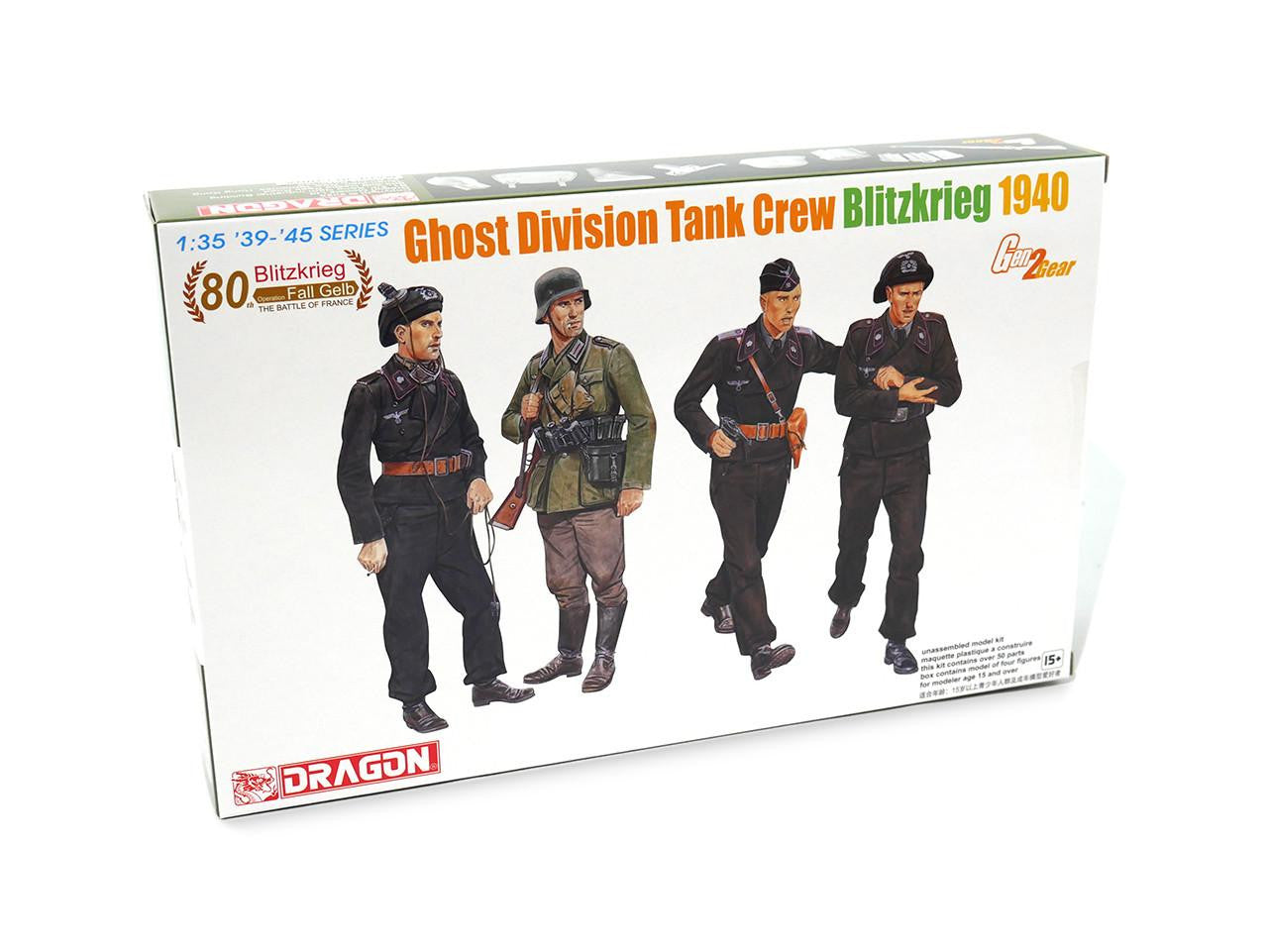 The set contains four figures from the “Ghost Division.” This was the moniker given to Erwin Rommel’s 7th Panzer Division because of the speed with which it moved during the invasion of France, with even the German High Command unable to keep up with its progress. Three of the figures are tank crewmen and the remaining figure is an infantryman. The set permits the creation of two separate episodes. The first sees a lightly wounded tanker being escorted to safety by a comrade. Such a scene is not easy to engineer by oneself because of the complicated task of blending two figures, but Dragon provides the ideal solution after completing and tooling a highly demanding master. The second pair of figures feature a tanker conversing with a soldier, and such is their versatility that they will easily assimilate into just about any diorama. The figures wear typical early-war uniform items like panzer berets from the 1940 Blitzkrieg era. Sharply molded and realistically sculpted, these German figures will contribute much to an interesting Blitzkrieg scene involving some of Dragon’s panzer kits.