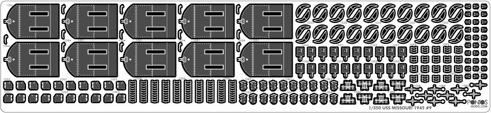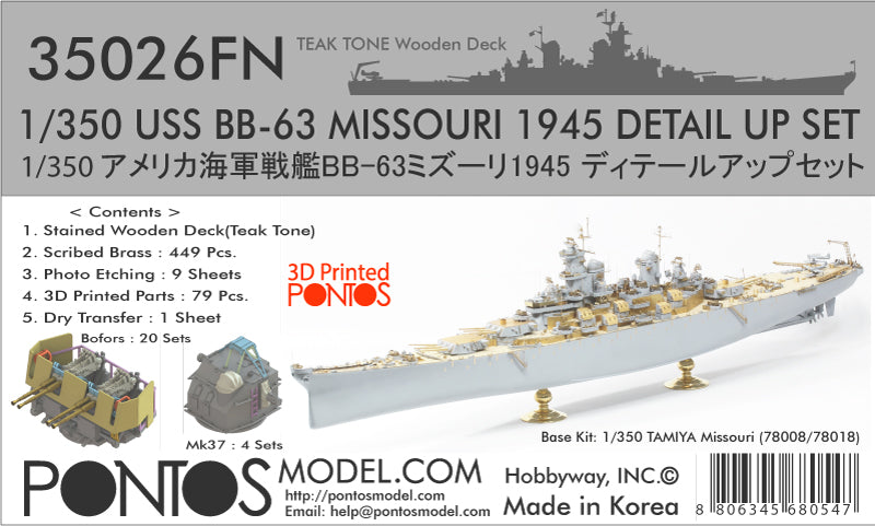 1/350 Pontos Model USS BB-63 Missouri 1945 Detail up set (Teak Tone) 35026FN