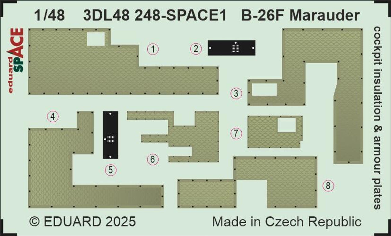 1/48 Eduard B-26F Marauder cockpit insulation & armour plates SPACE 3DL48248