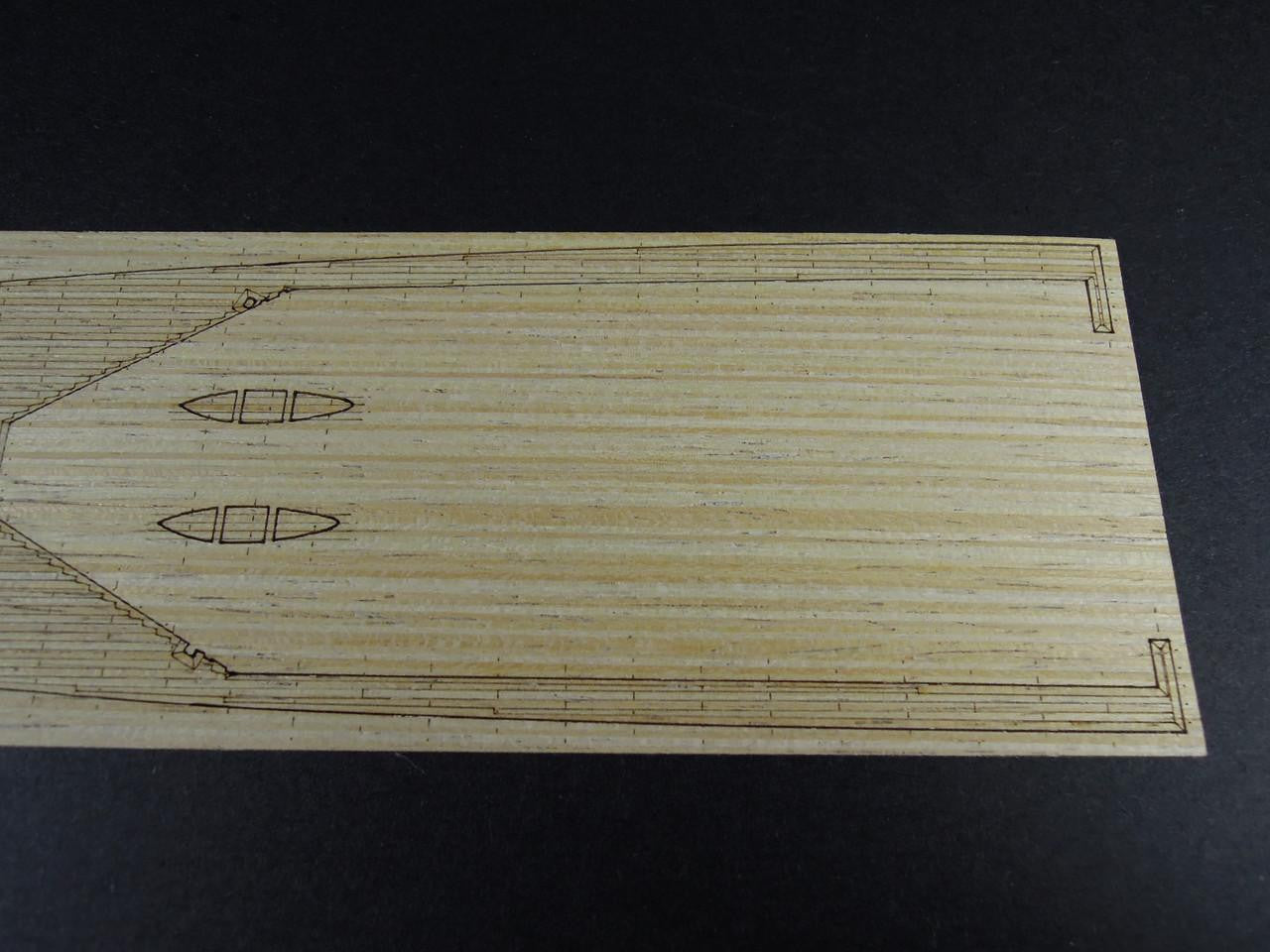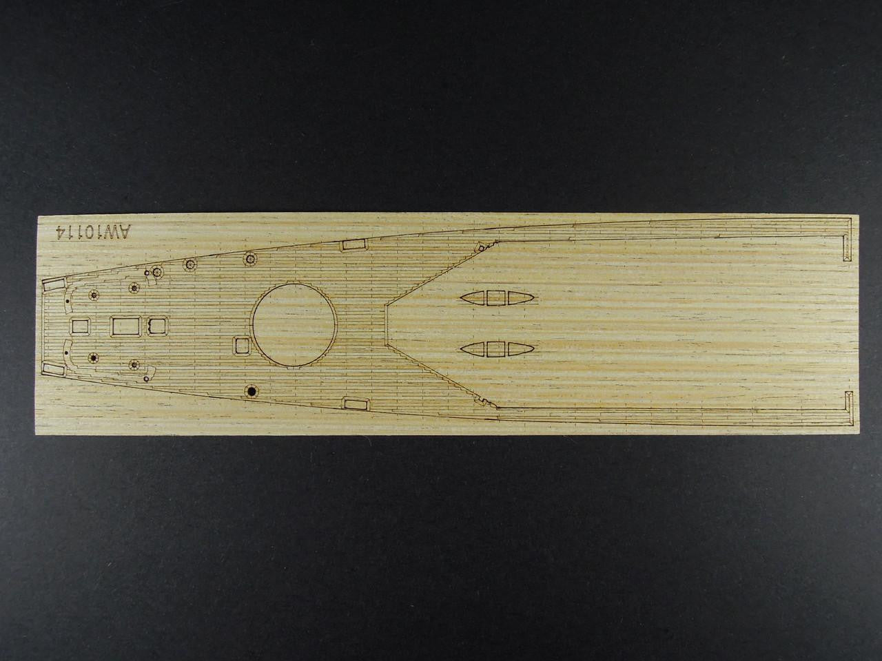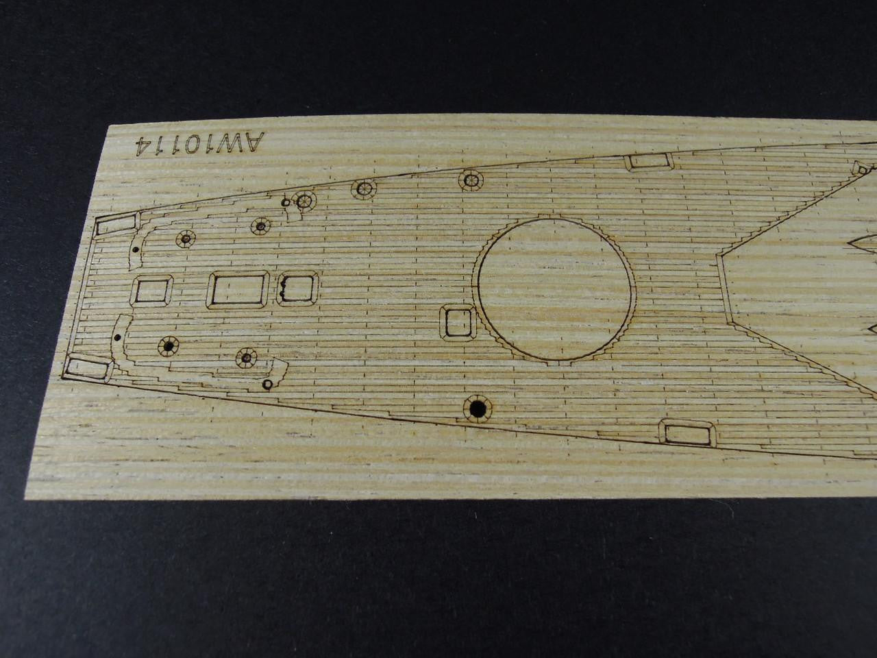 The USS Indianapolis (CA-35) was a Portland-class heavy cruiser that served with distinction throughout World War II. She earned ten battle stars for her service in the Pacific, including operations at Iwo Jima and Okinawa. After delivering components for the atomic bomb to Tinian in July 1945, she was tragically sunk by a Japanese submarine, resulting in one of the U.S. Navy's greatest tragedies. This wood deck allows you to honor her legacy with a build that captures the authentic appearance of this historic cruiser.