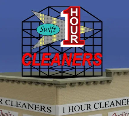 One Hour Cleaners Billboard - Let Miller Engineering take you to the cleaners! This large, colorful sign is reminiscent of the days when neon was king! Such signs are rarely ever produced today.