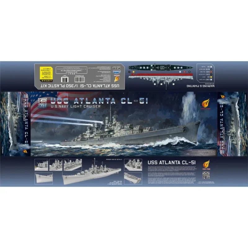 The Very Fire 1/350 USS Atlanta Battleship Warship model kit is a highly detailed replica of the famous ship. The set includes both an aircraft carrier and battleship, and is designed for hobbyists and collectors. The kit is made by Very Fire and is in a 1:350 scale.