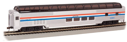 In the mid-1950s, the Budd Company developed a series of full-length bi-level dome cars, offering a panoramic view for all passengers seated on the upper level, while the lower level featured a lounge area. A fleet of 14 "Big Domes" were delivered to the Santa Fe Railway in 1954, while 6 similarly configured "Great Domes" were delivered to the Great Northern Railway the following year. A number continued in revenue use into the 1990s under Amtrak®, with “Ocean View” remaining in service on the railroad until 2019. Others found further use as excursion cars on tourist railroads, while some were converted for use on corporate business trains. This model represents "Ocean View" in its final configuration with Amtrak®, wearing an updated "Phase III" paint scheme found on the prototype between 2011 and 2019.