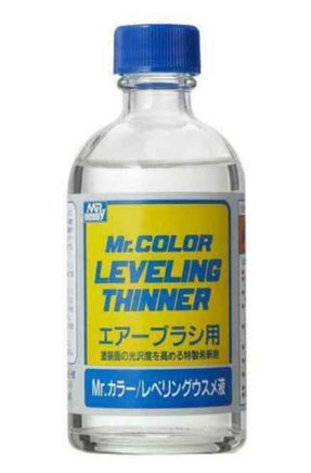 Mr. LEVELING THINNER is excellent for spray (airbrush) applicators.  Mixing Mr. LEVELING THINNER into Mr. COLOR at a ratio of 1:1 or 1:2 improves coat leveling and increases shine. When drying is slow because of insufficient air current during winter months, it is best to mix Mr. COLOR THINNER into Mr. LEVELING THINNER.  The mixture will be dry to the touch after a period of about 10 minutes.