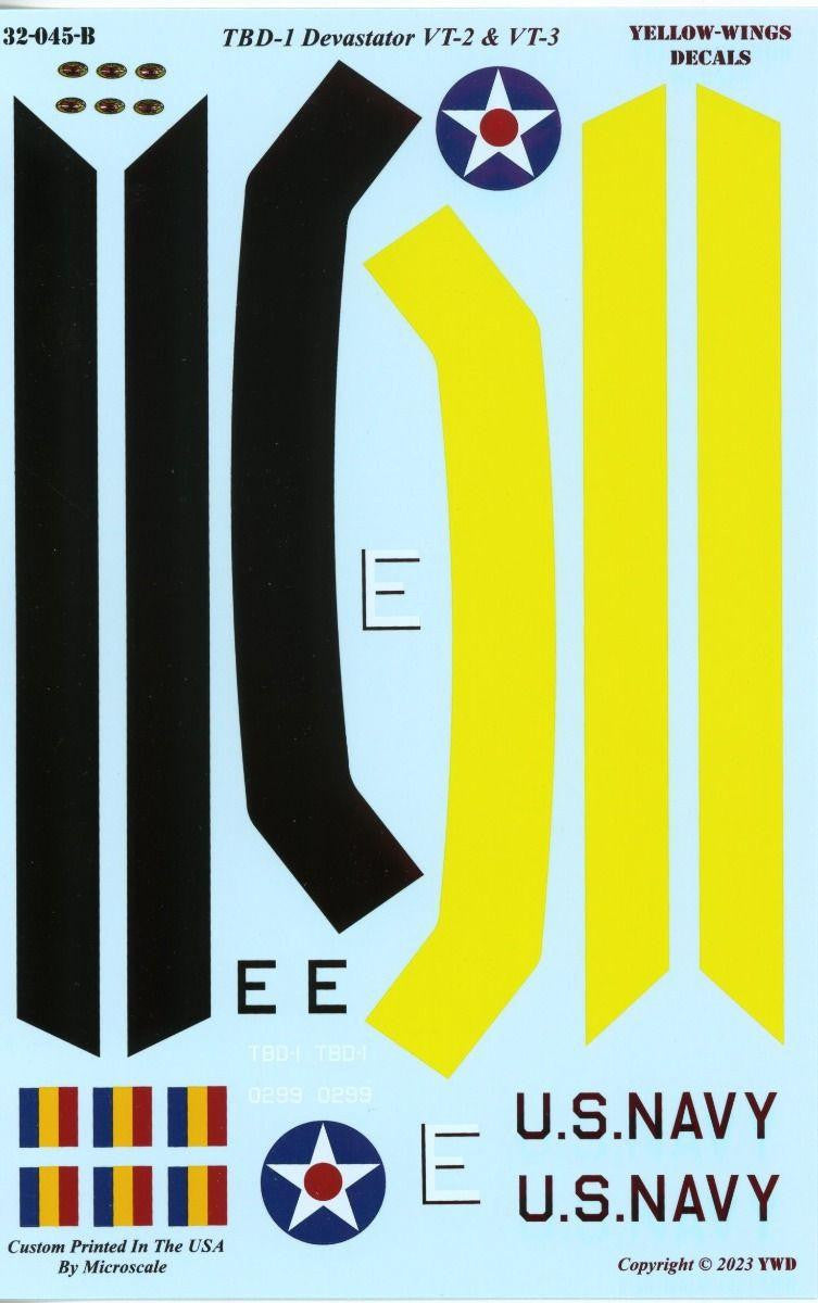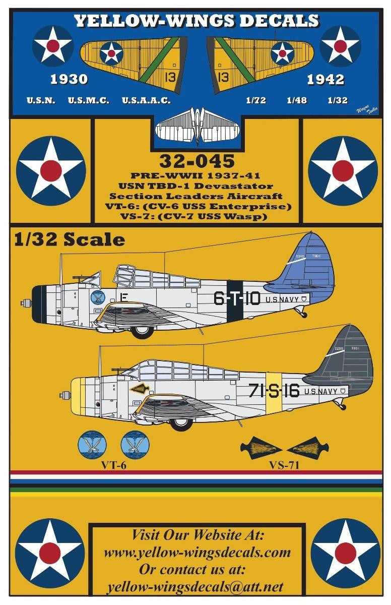 1/32 Yellow Wings Decals Douglas TBD-1 Devastator VT-6, VS-71 Pre-War